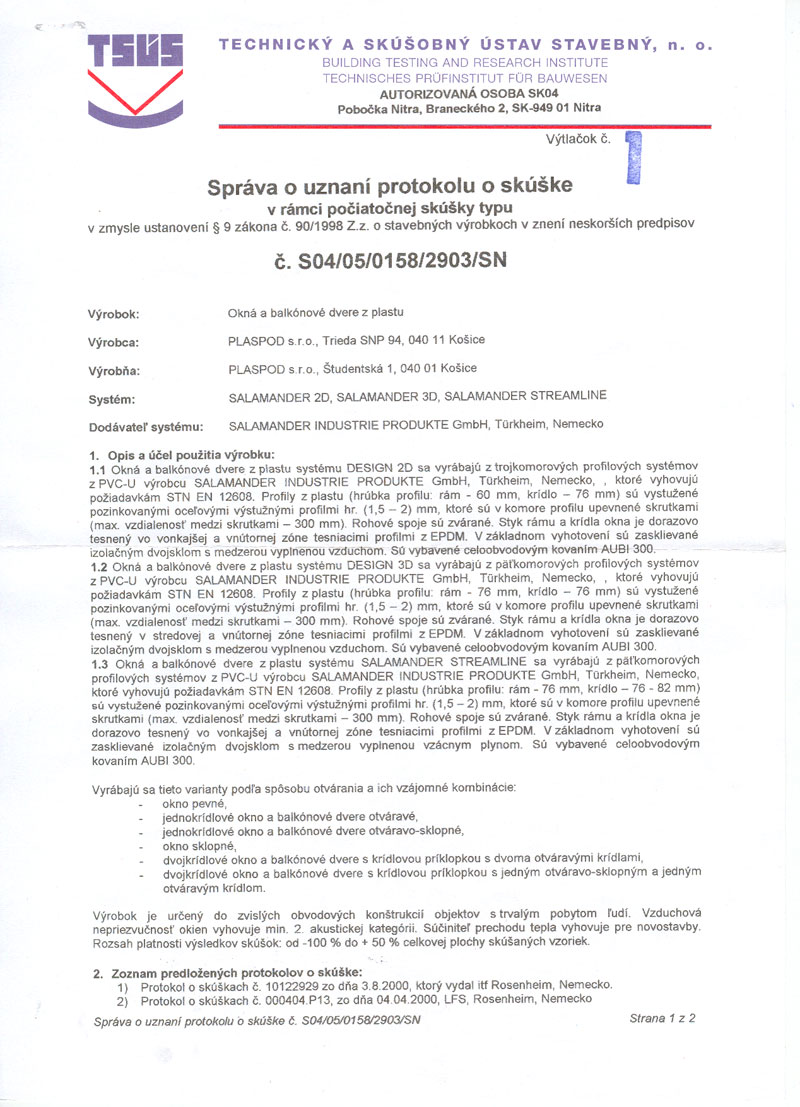 Výrobky sú vyrábané z nemeckého profilového systému SALAMANDER bluEvolution a greenEvolution.