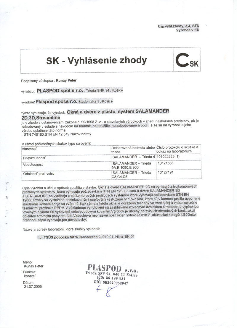 Plaspod PK spol. s r. o. je súkromnou spoločnosťou, ktorá má v predmete činnosti o.i. výrobu a montáž plastových okien a dverí, vrátane poradenstva, servisu a konzultácií týkajúcich sa výplní stavebných otvorov.